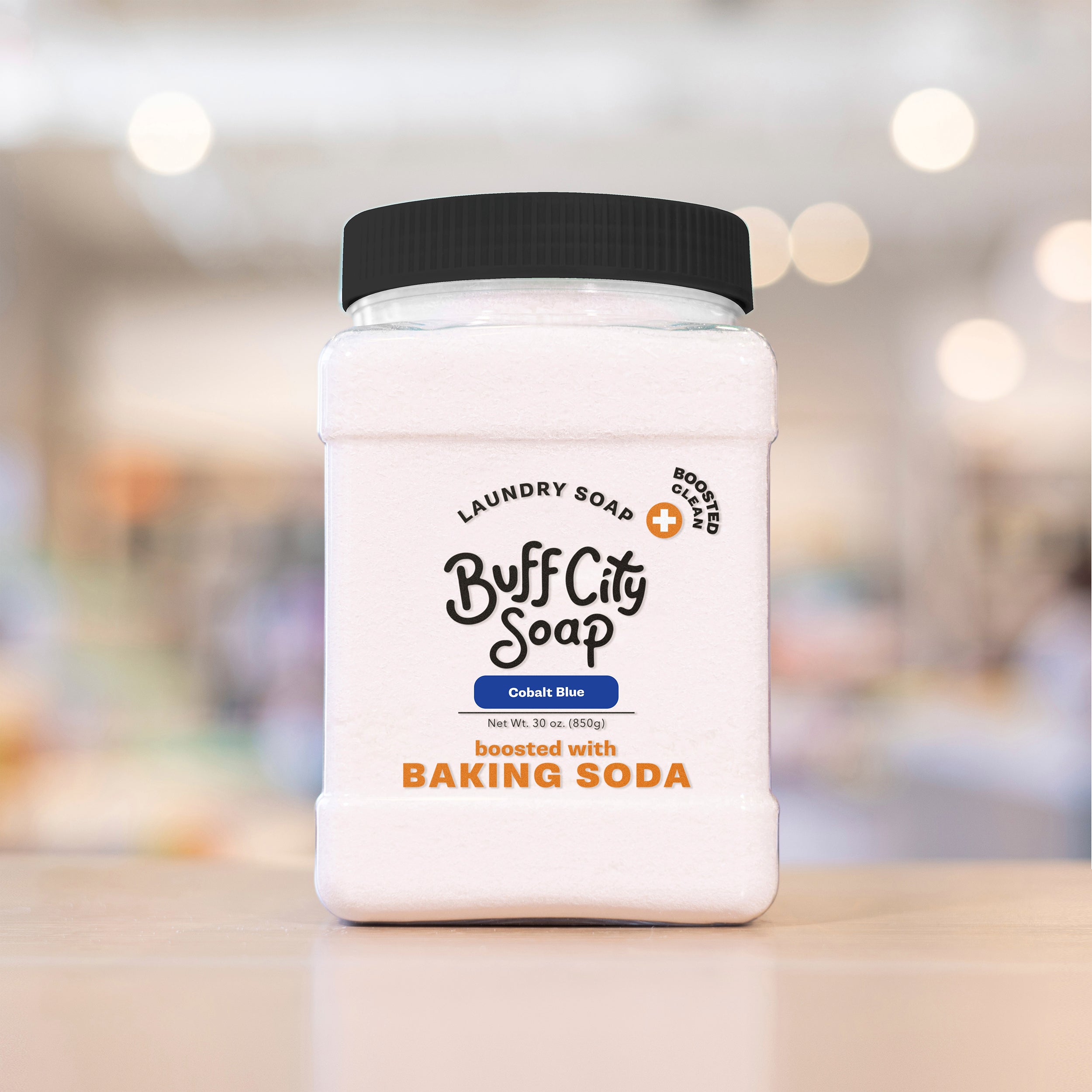 Cobalt Blue Laundry Soap Plus Plus up your laundry routine with Laundry Soap+! Each batch is handmade with 5 simple ingredients + baking soda for boosted cleaning power.