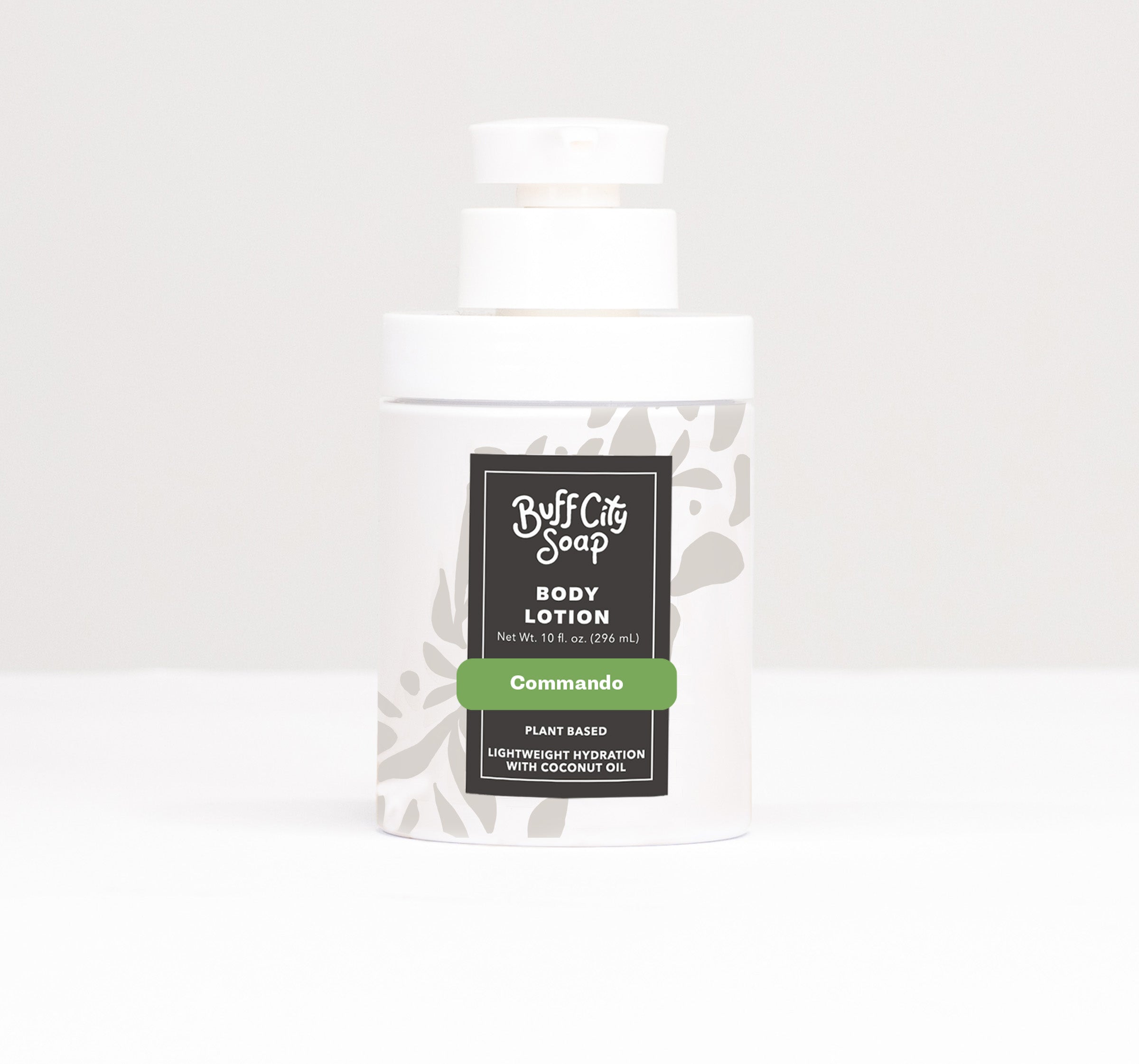 Commando Body Lotion Experience daily lightweight hydration with coconut oil! Our Body Lotion is gentle on the skin. dermatologist tested. & made with plant based ingredients so you can feel soft. moisturized. & nourished.