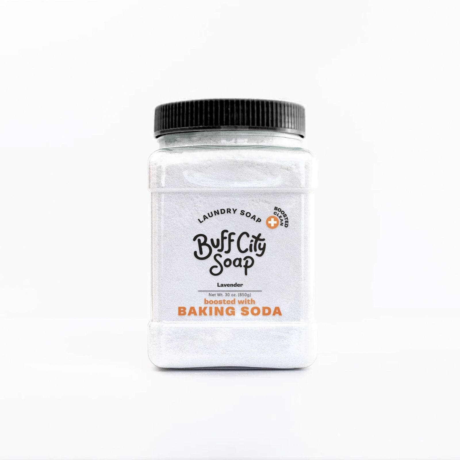 Lavender Laundry Soap Plus Plus up your laundry routine with Laundry Soap+! Each batch is handmade with 5 simple ingredients + baking soda for boosted cleaning power.
