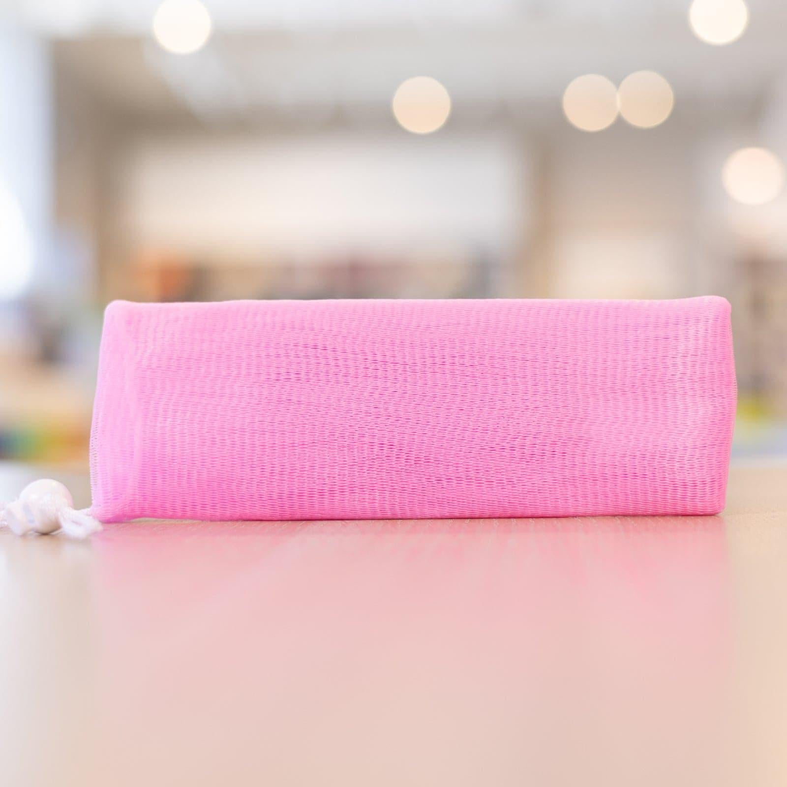 Pink Soap Sleeve Extra handy for showering and bathing. the Pink Soap Sleeve lets you get a comfortable hold of your Buff City Soap Bar. The layers of stretchy mesh provide exfoliation while helping to create a rich lather. even when your Soap Bar starts getting smaller. And when you’re finished washing. you can simply store the soap in its sleeve so it doesn’t stick to surfaces.