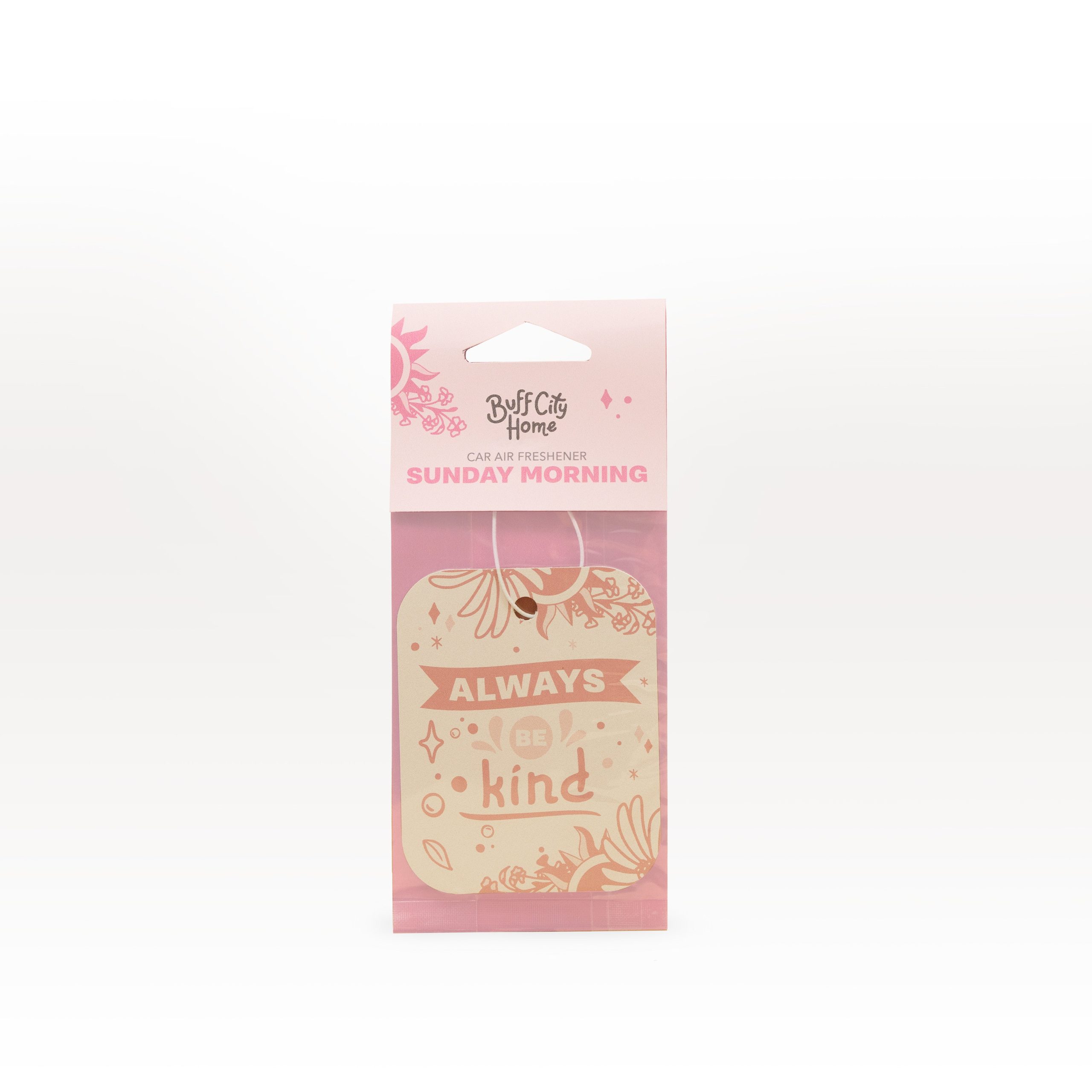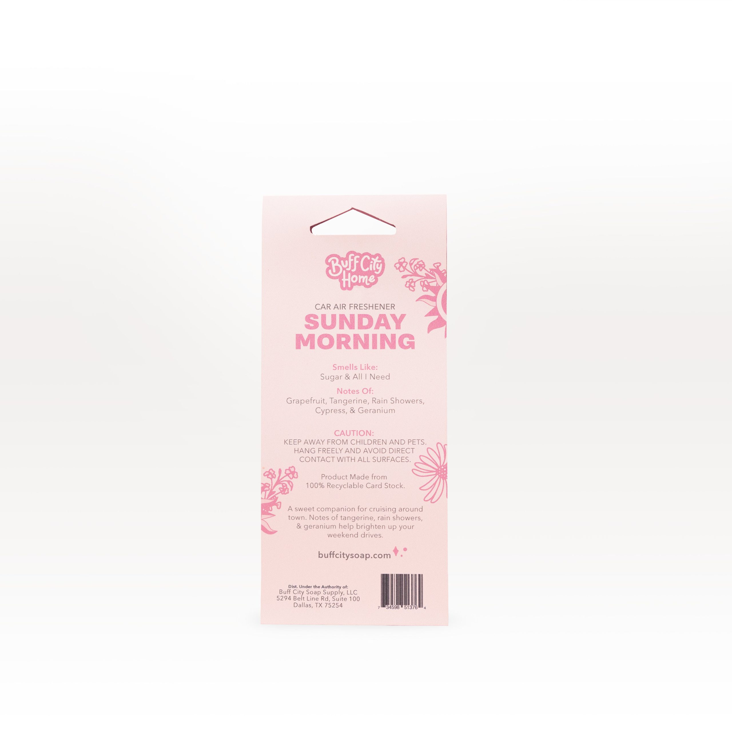 Sunday Morning Car Air Freshener A sweet companion for cruising around town. Notes of tangerine. rain showers. & geranium help brighten up your weekend drives.