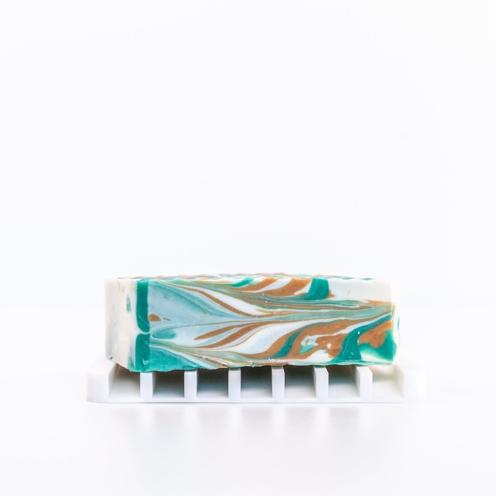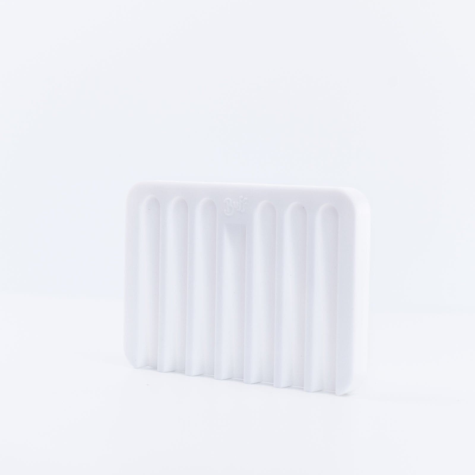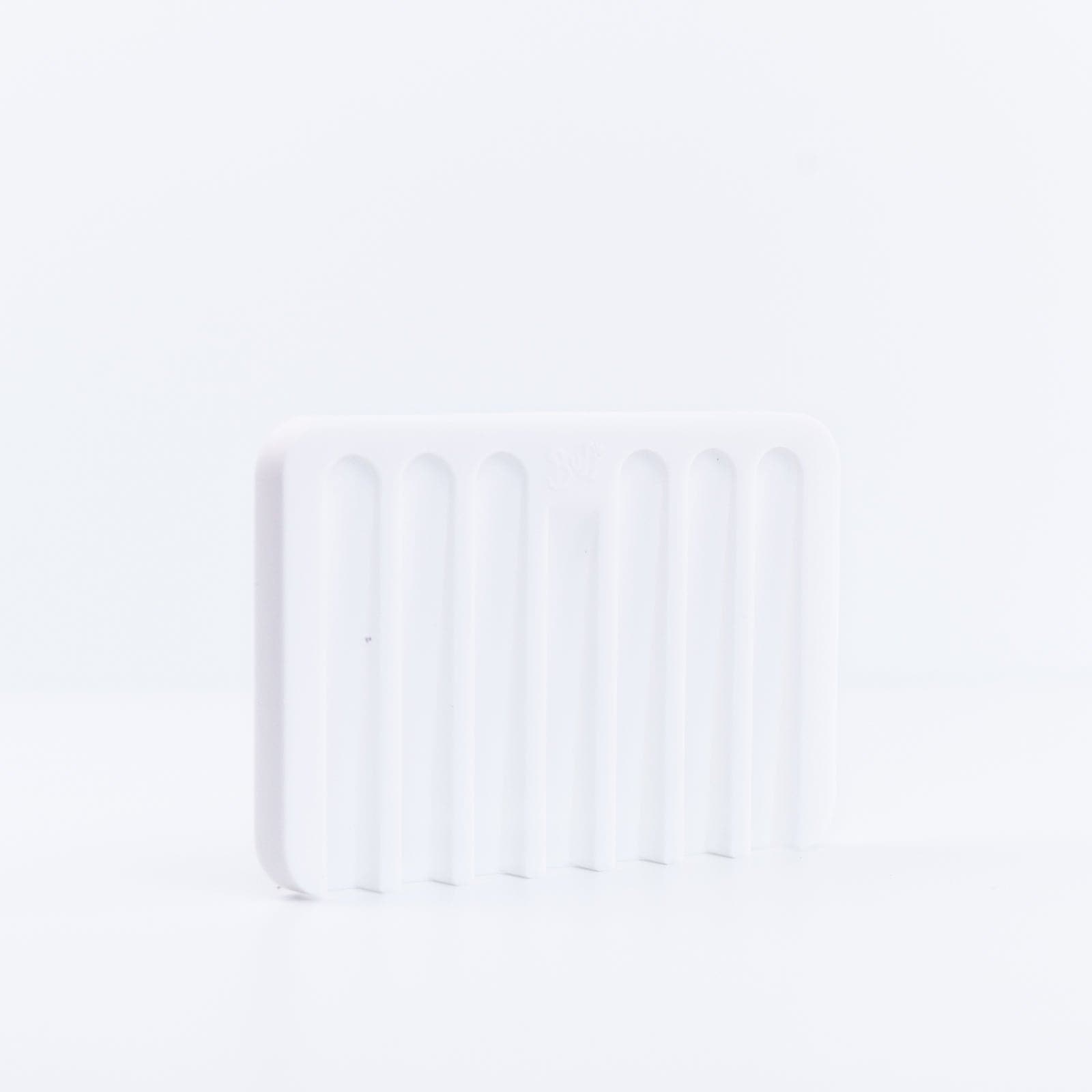 White Silicone Soap Dish Simple and easy to clean. the Silicone Soap Dish has a groove and slat design that funnels water away from your Soap Bar. drying in between uses to help prolong the life of your soap.